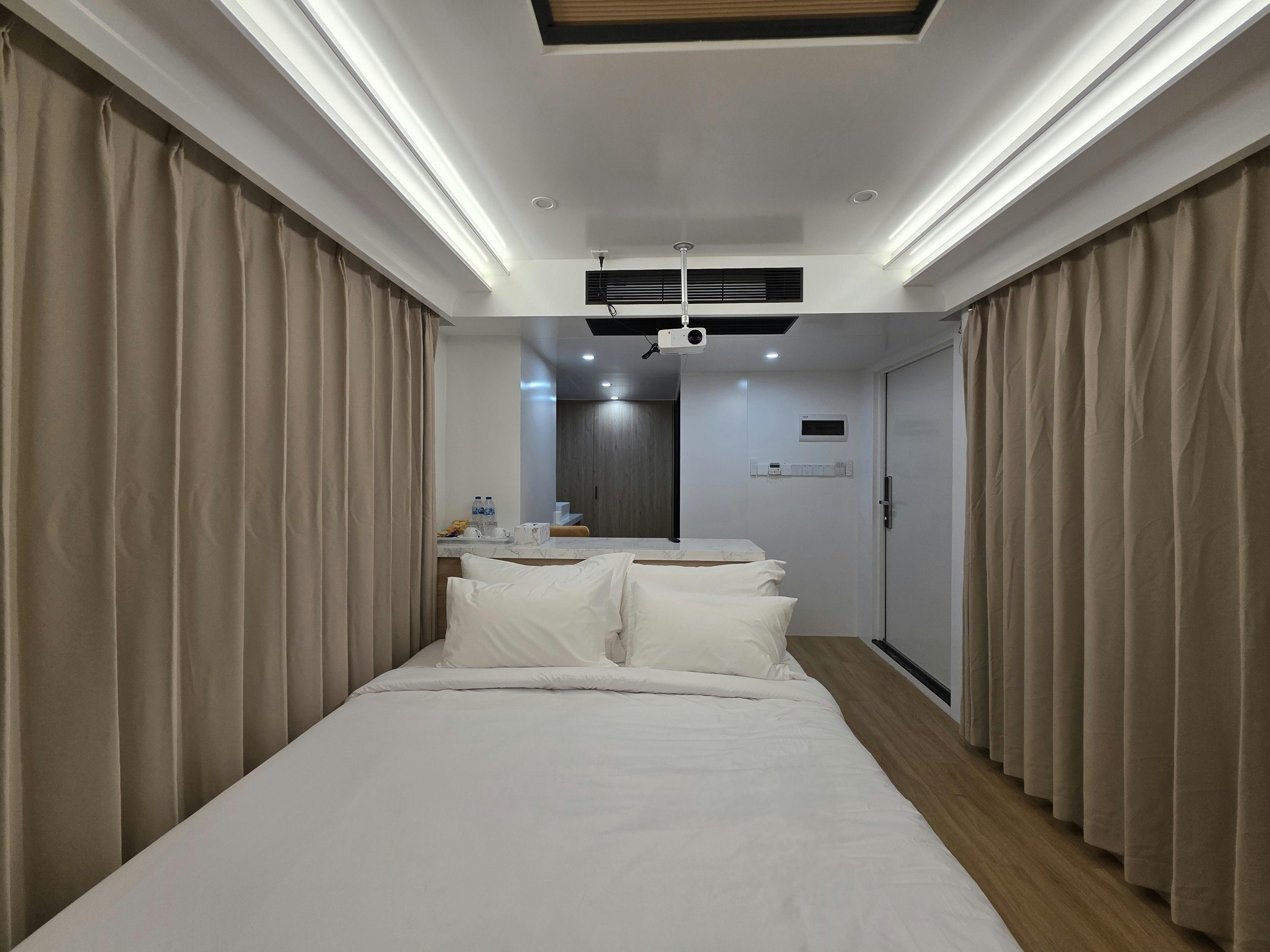 วิลล่าแคปซูลอวกาศ เตียง 6 ฟุต วิวภูเขา เหมาะสำหรับผู้ที่ชื่นชอบสถาปัตยกรรมที่ล้ำสมัย ผสานเทคโนโลยีที่ทันสมัย ท่ามกลางวิวภูเขาที่สวยงาม ห้องพักนี้ มาพร้อมกับ โปรเจคเตอร์ เหมือนมีโรงหนังอยู่ในที่พัก, ม่านไฟฟ้า, Skylight (Sunroof), และ มาพร้อมกับระเบียงสำหรับนั่งพักผ่อน และ อ่างน้ำร้อนเพื่อผ่อนคลายในวันพักผ่อนของทุกท่าน